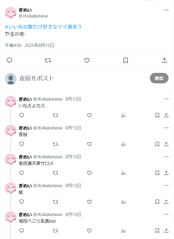 | … | 9025/09/01(月)15:27:52No.1348981447そうだねx14>なぜか荒らしが苦しみ始めるからやり得だな |