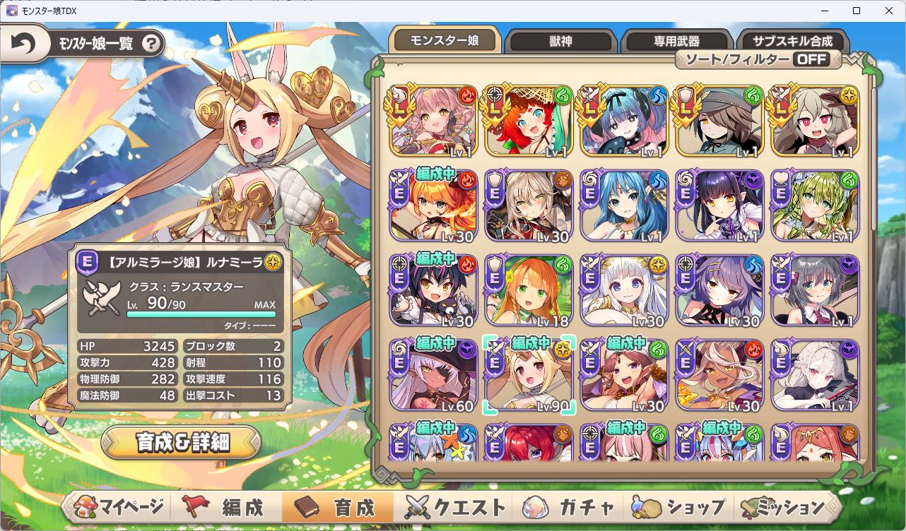 | … | 91925/09/01(月)17:49:43No.1349012023+一部の高難易度以外はだいたい低レアでクリアできるから初心者は低レアの強いキャラを育てるわん |
