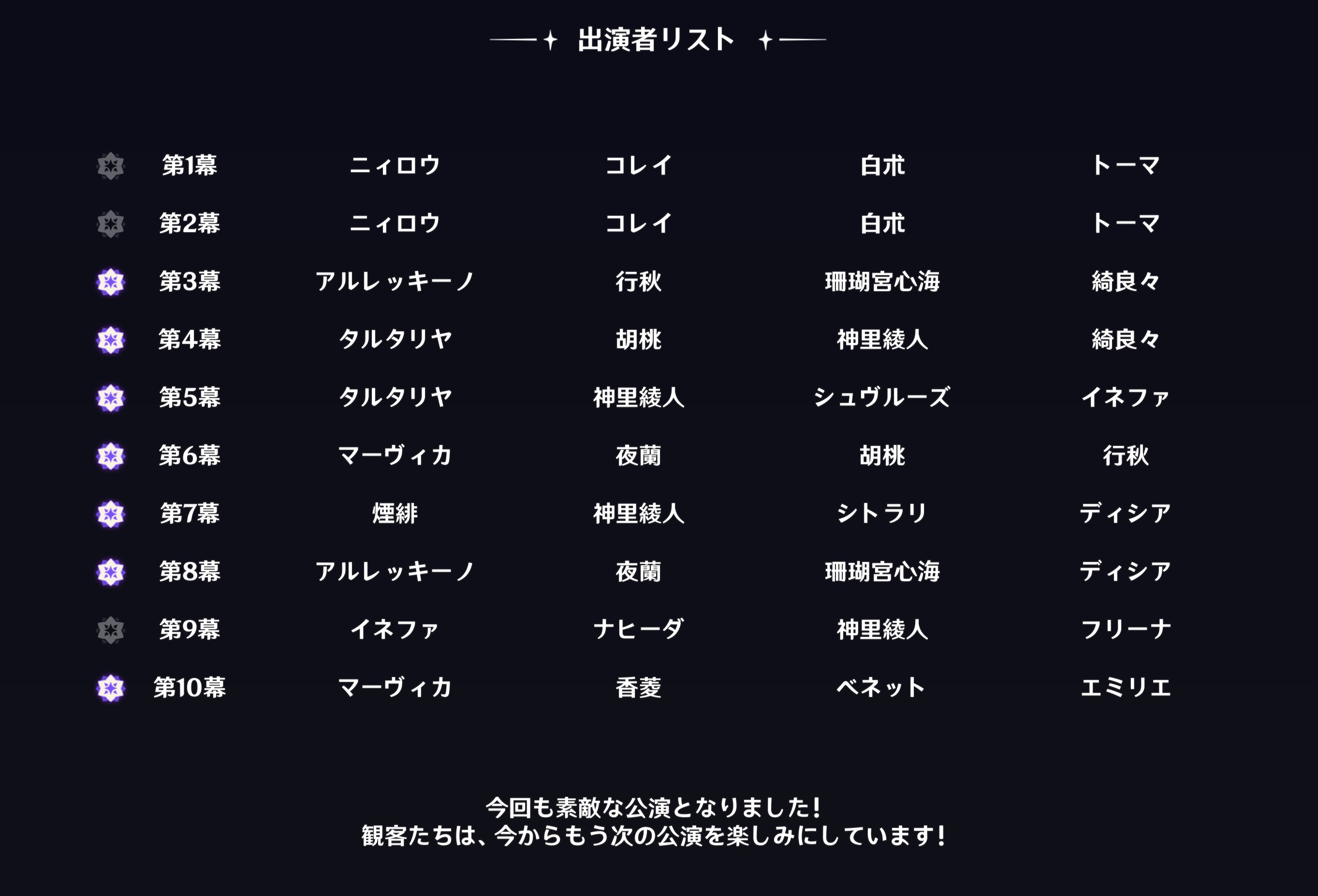 | … | 4325/09/01(月)18:42:43No.1349027616+>星4のラインナップてもう出てたかぁ? |