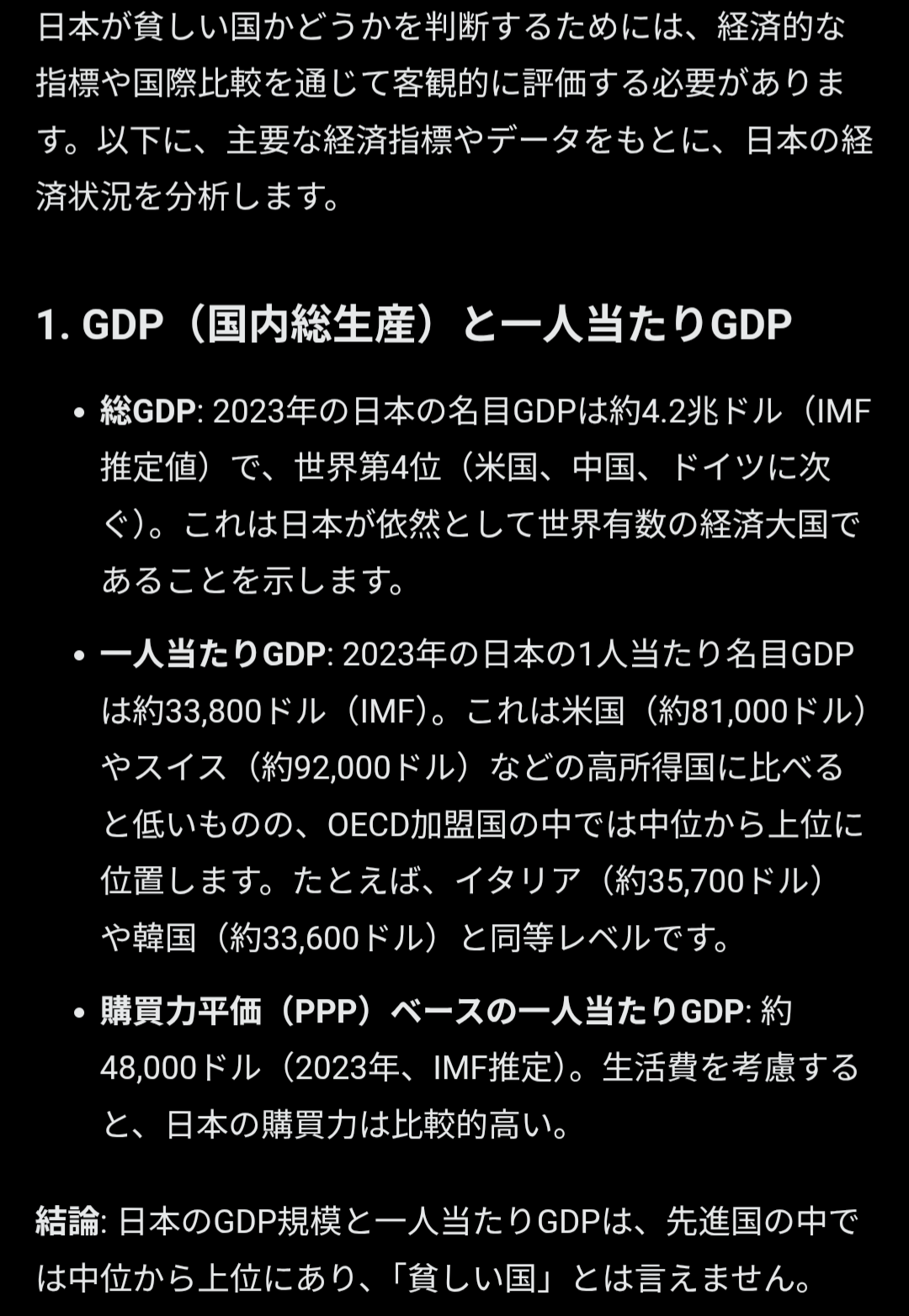 AIに日本は貧しい国か聞いてみたこのスレは古いので、もうすぐ消えます。