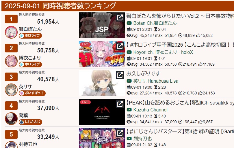 | … | 2725/09/01(月)23:05:33No.1349142680そうだねx1>にじさんじのKINGぶいすぽに負けてて草 |