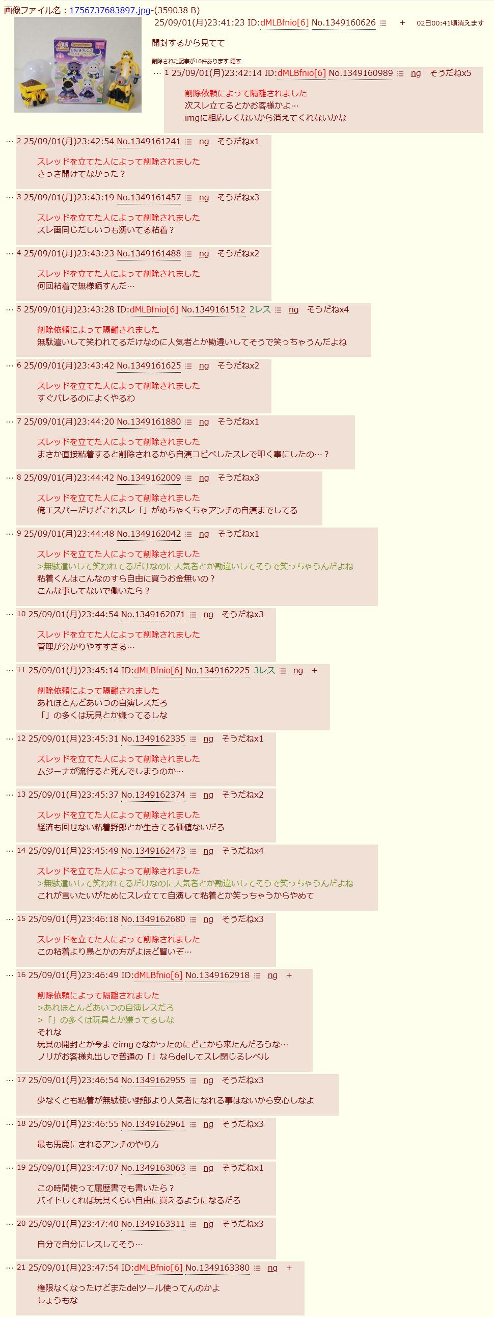 | … | 2025/09/01(月)23:47:40No.1349163311そうだねx4自分で自分にレスしてそう… |