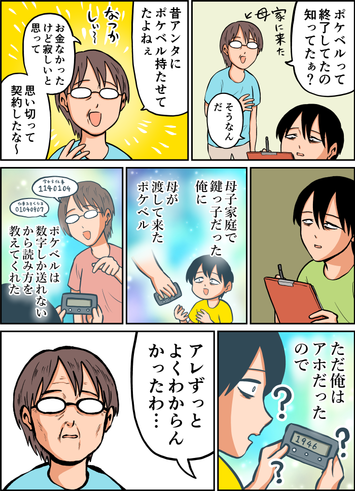 | … | 13925/09/02(火)04:28:01No.1349208022そうだねx1>ポケベル出るまでは家電や手紙だったからな…相当画期的だったらしい |
