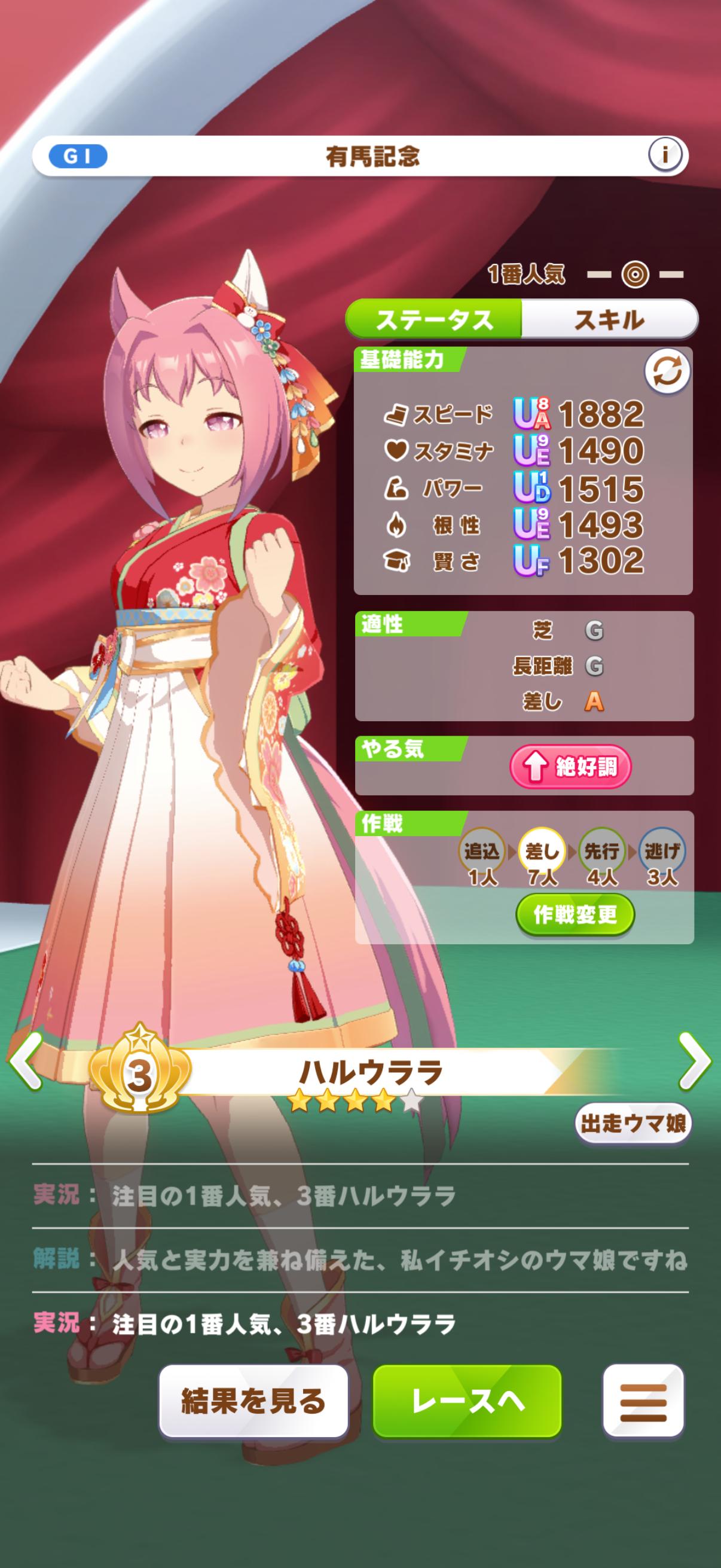 | … | 18325/09/02(火)23:14:02 ID:SMGCEb8wNo.1349454868そうだねx1>テイオーさんクロノさんに大逃げか逃げも丸く見えますが経験上こうするとクロノさんの方が勝つんですよね… 出すのは素テイオーさんですかね? 弱くないし今でもワンチャンある性能はしてると思うんですがクロノちゃんが中距離先行としてはかなり壊れてるので難しいところです 追い比べ要員としてひと回り弱めのクロノちゃん出すのも本末転倒な気もしますし 号外狙いなら逃げ2テイオーさんで A決はキャラパワー差考慮という感じになるんじゃないでしょうか |