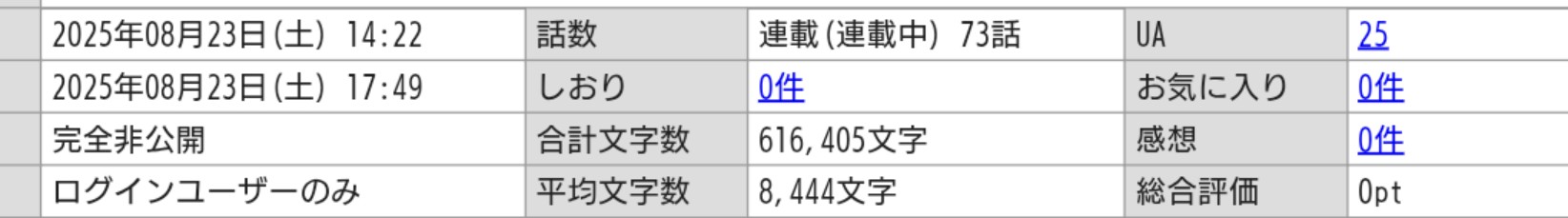 | … | 23825/09/05(金)19:28:53No.1350242318+>手元での管理や読み返しがしんどくなってきたからハーメルンに非公開で乗せてるわ |
