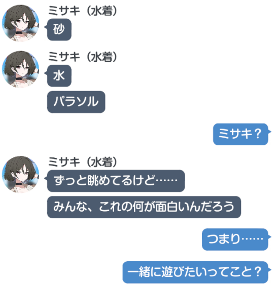 | … | 21025/09/06(土)20:55:56No.1350625696+どうしてミサキの話をしたんですか? |