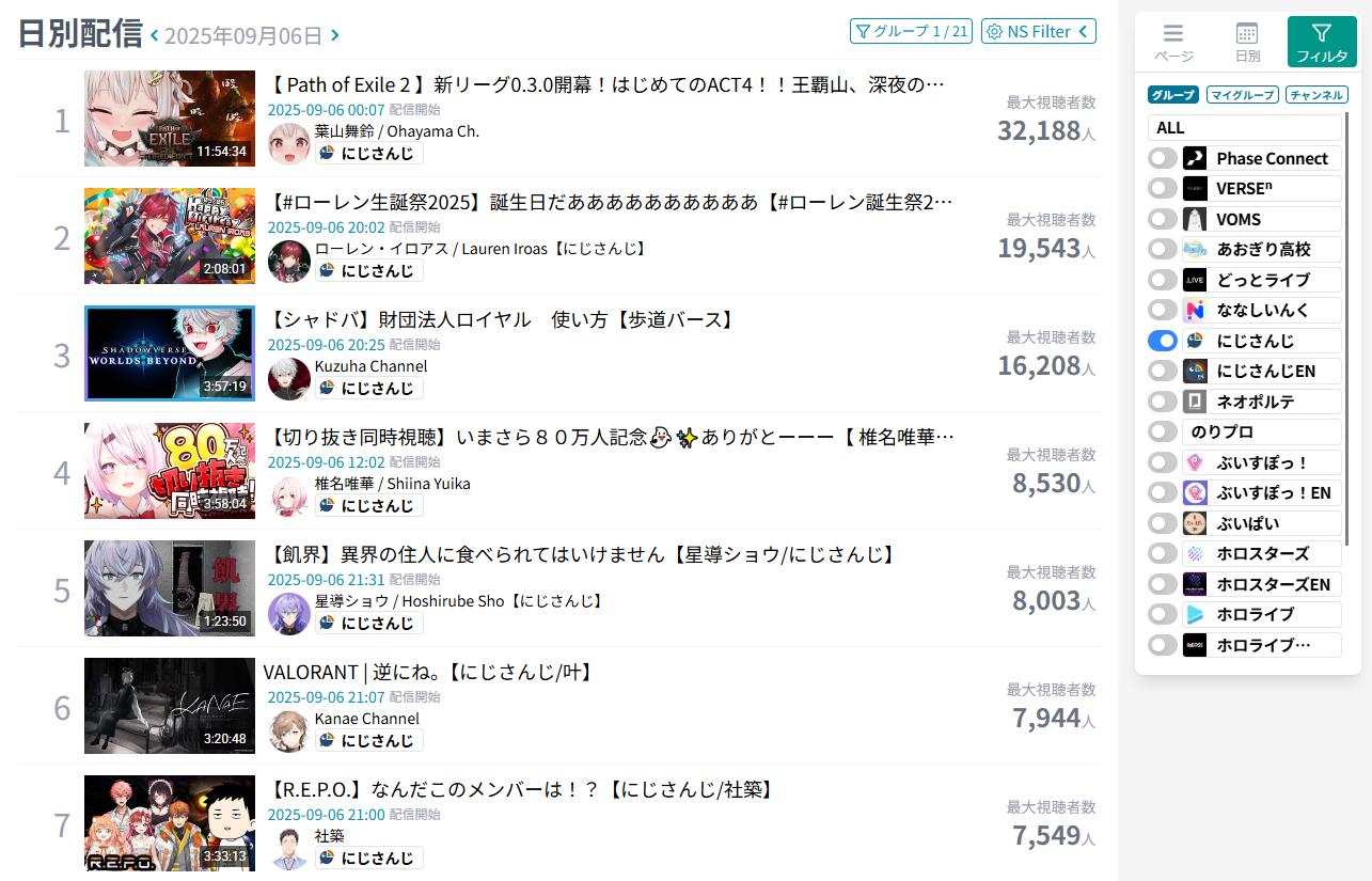 | … | 7825/09/07(日)18:43:53No.1350946796+>真面目に各ライバーの配信追ってるはずのにじリスこそ違和感覚えるはずなんだけどな深夜組の配信の数字 |