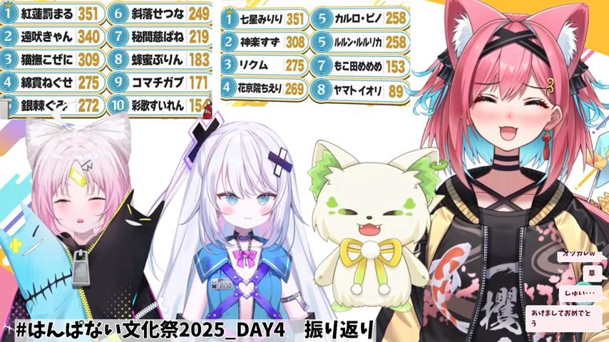 | … | 74425/09/08(月)20:15:10No.1351295870+>これでも連覇出来なかったvakatuberは魔鏡だな… これより上が複数人いるの猫の国なのか平和な国と誇るべきなのか |