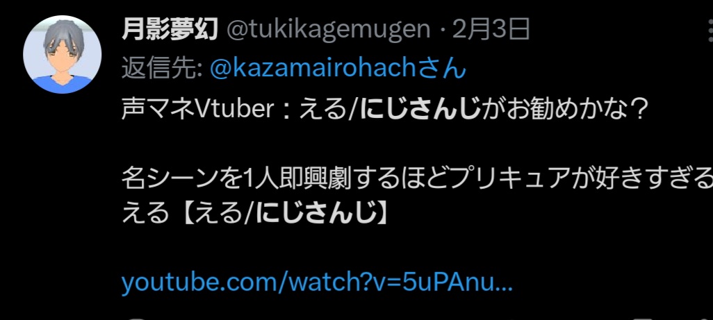 | … | 24925/09/12(金)16:34:24 ID:frVV1dlkNo.1352424209そうだねx8クンリニンサン「にじさんじもういいですよ!」 |