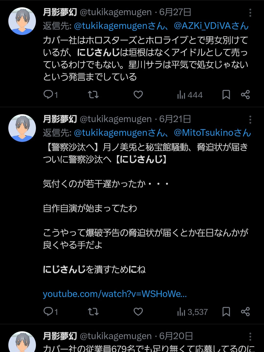 | … | 5325/09/12(金)16:01:42No.1352418192そうだねx12まだ「マネージャーが夜中まで配信監視させられてる!ブラック企業だ!」みたいなこと言った方がマシだろ |