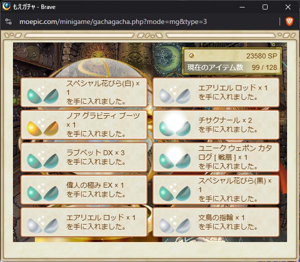 | … | 5725/09/16(火)15:00:57No.1353802202+ギガントレットが3等に入ってるもにー! |