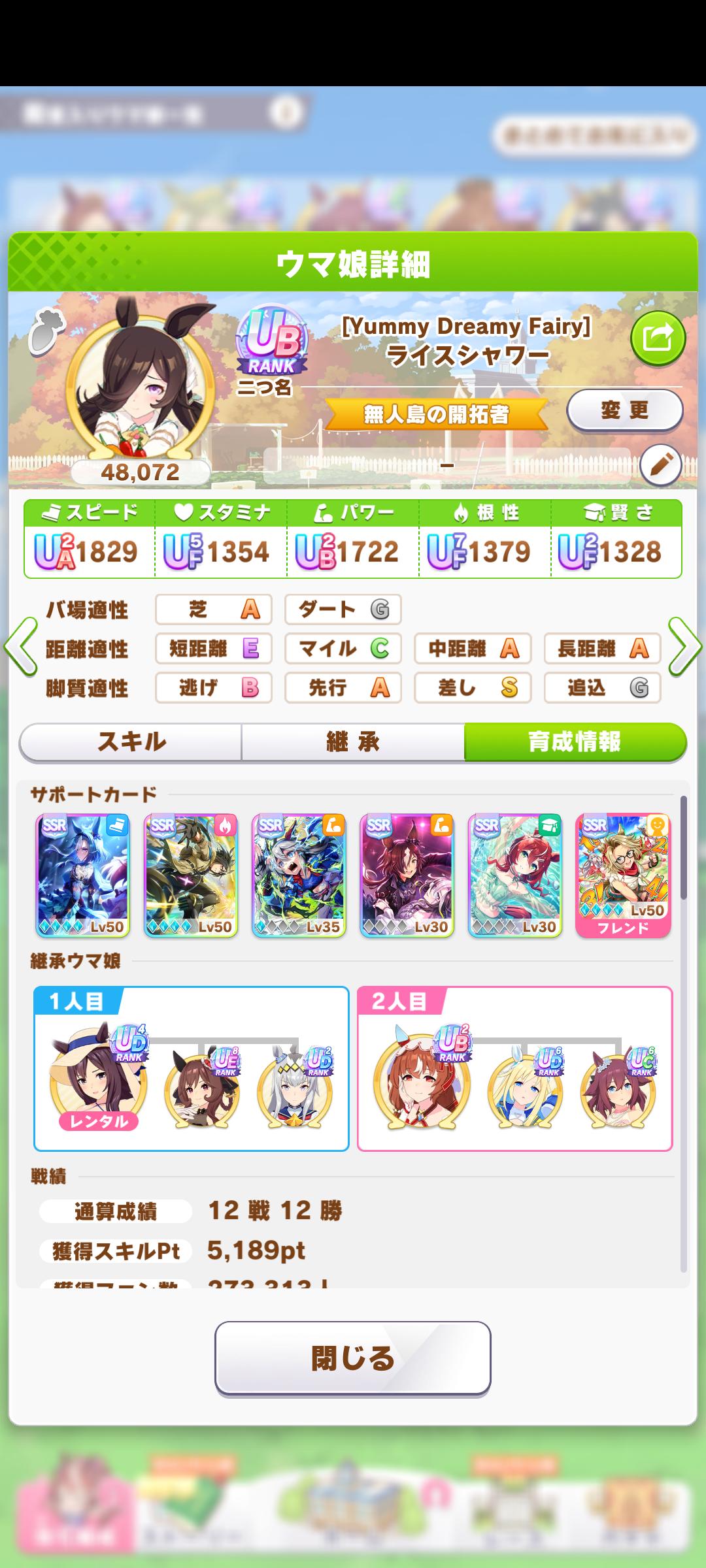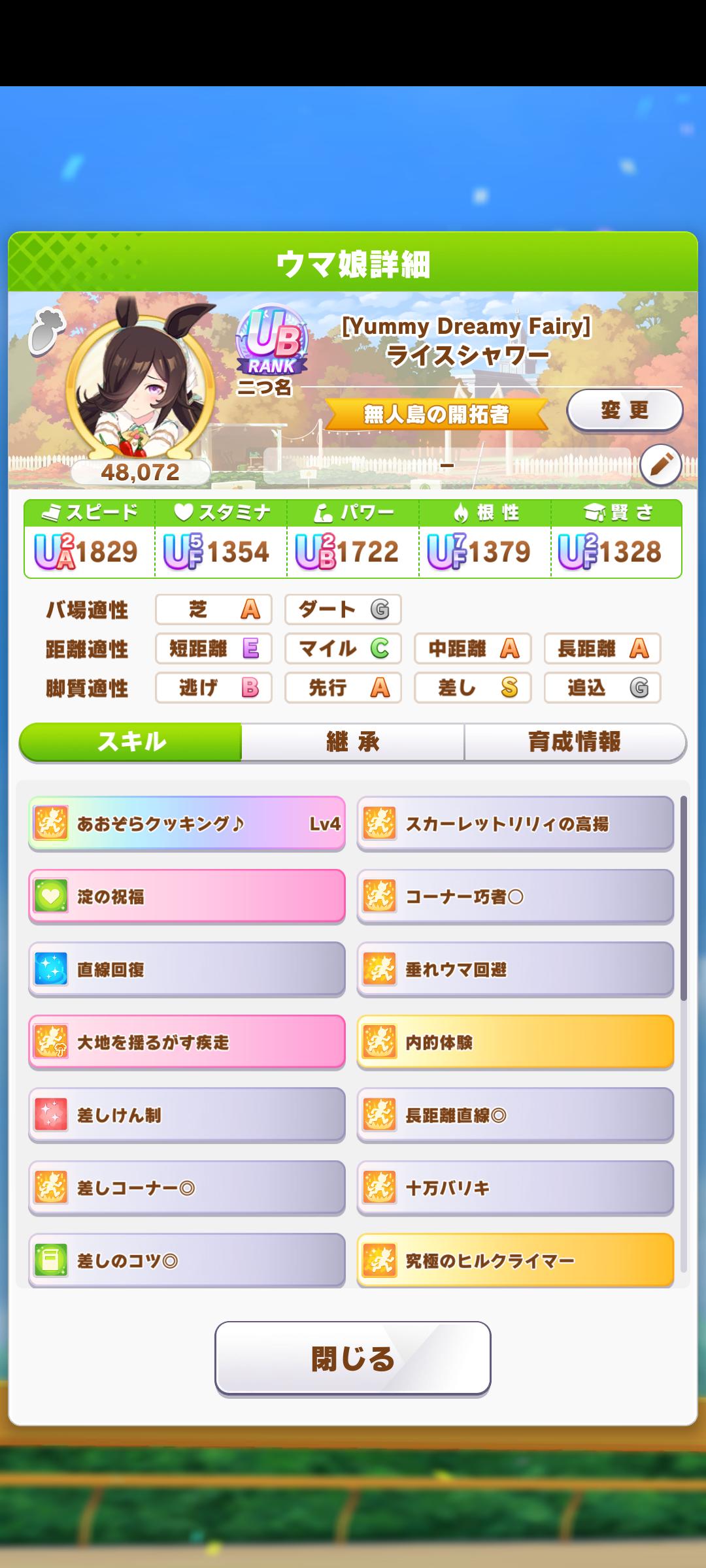 | … | 5025/09/17(水)11:06:01No.1354050816+スタギムレットでやってるなら金スキル中距離指定だし得意率低いしで無人島長距離育成には向いてないよ |