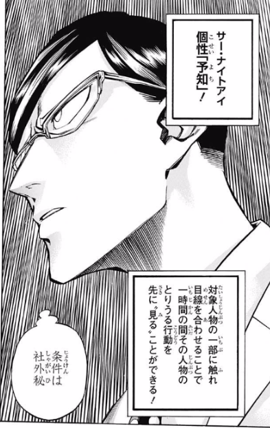 | … | 10225/09/17(水)17:06:28No.1354130543+対象人物の一部に触れ目線を合わせることで一時間の間、その人物の一生を先に"見る"事ができる |
