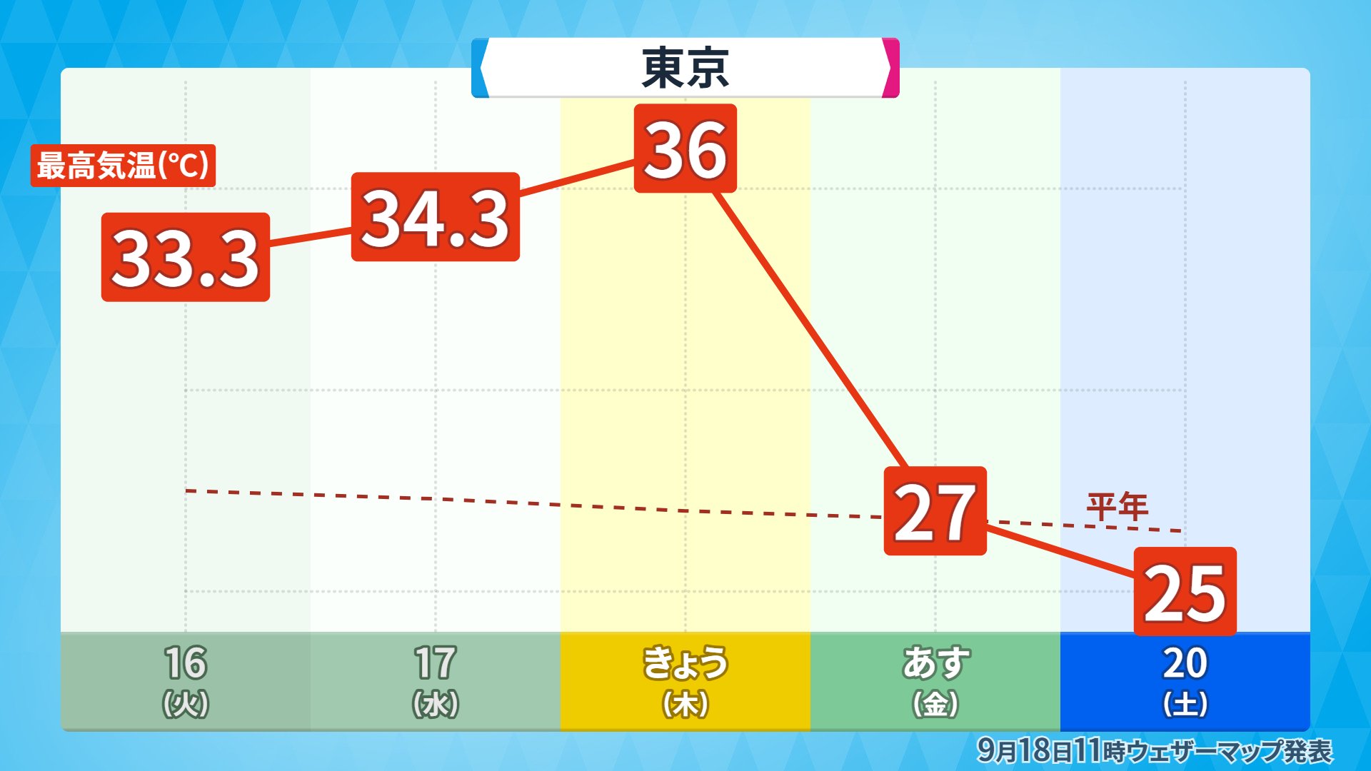 | … | 3825/09/19(金)01:16:12No.1354583293+東京は日曜に最後のあがきで34°くらいになるよ |