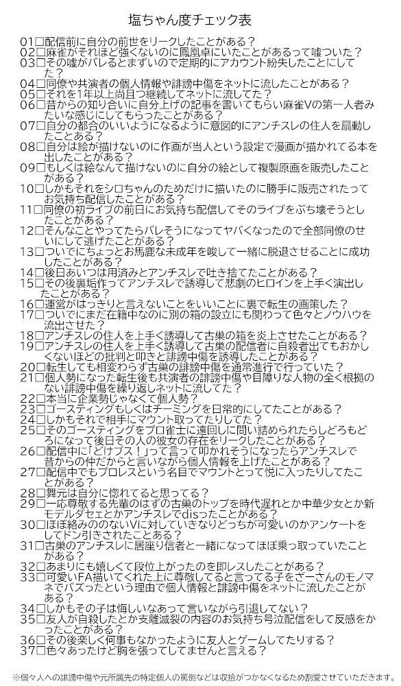 | … | 56925/09/19(金)12:44:41No.1354665287そうだねx4>塩ちゃんに比べたらにじさんじなんて可愛いもんさ |