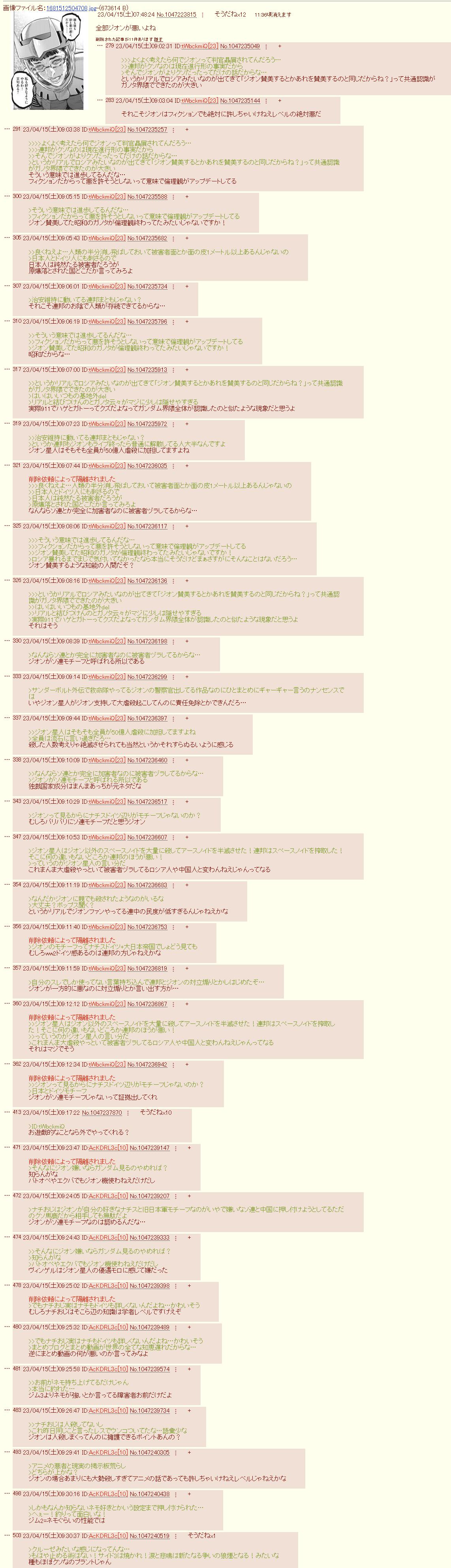 | … | 1525/09/19(金)22:35:53No.1354833946そうだねx9>ここ元々狂信的ジオンアンチのナチおじ居着いてたのが |