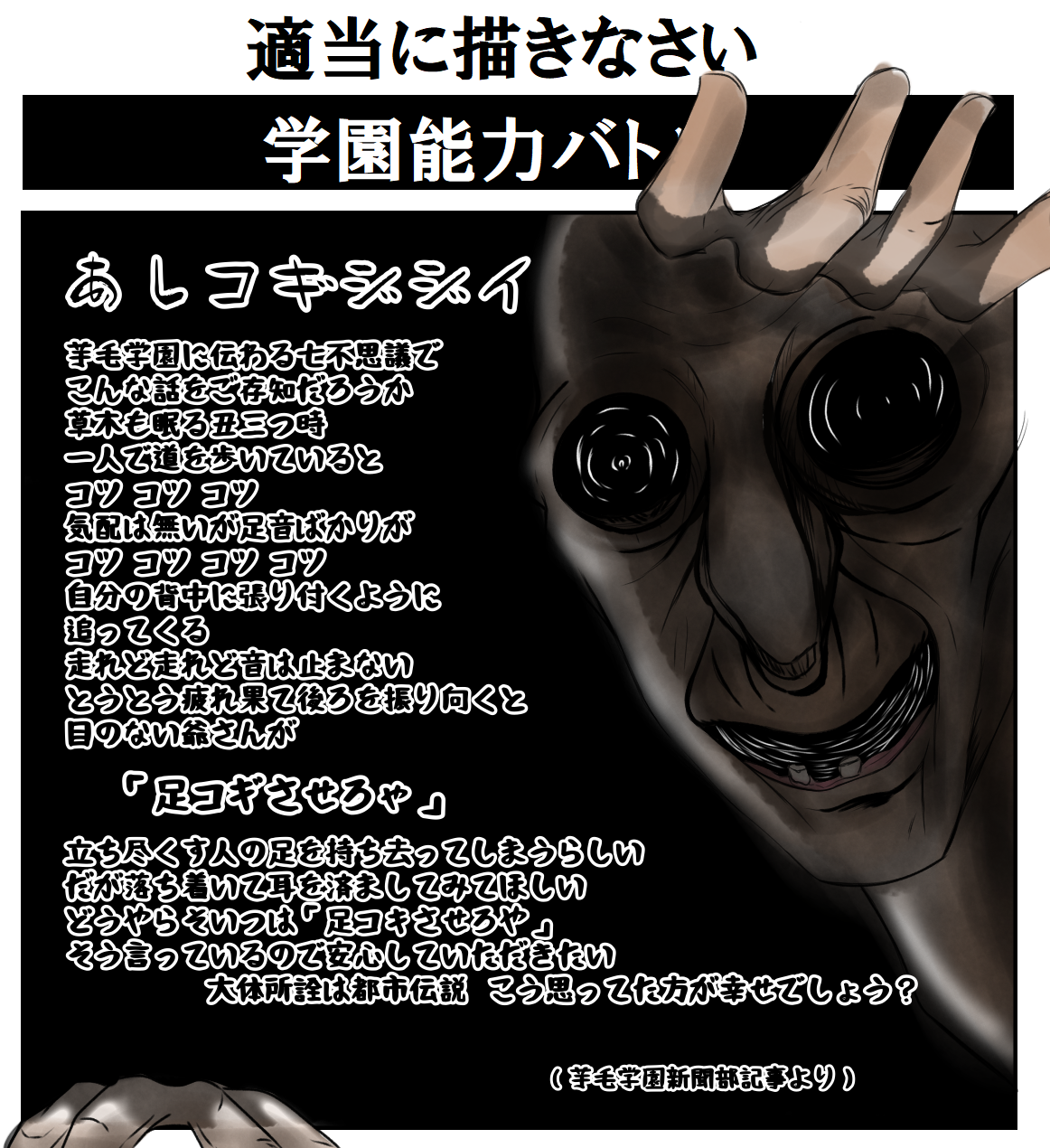 | … | 525/09/20(土)21:42:13No.1355155379+こいつ自身も別の怪異に目玉を奪われてるんだよね… |