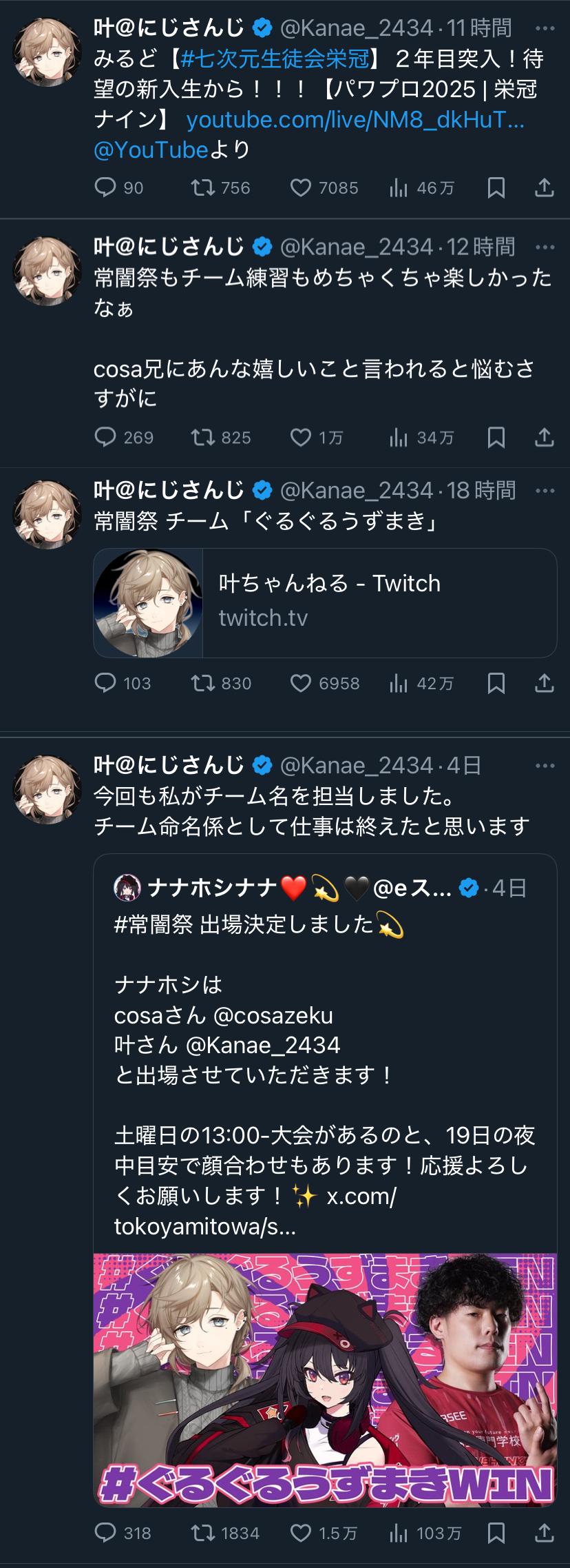 | … | 2925/09/21(日)08:05:05No.1355269511+>常闇杯出場ライバーお二方のXが面白かったから共有しとくね |
