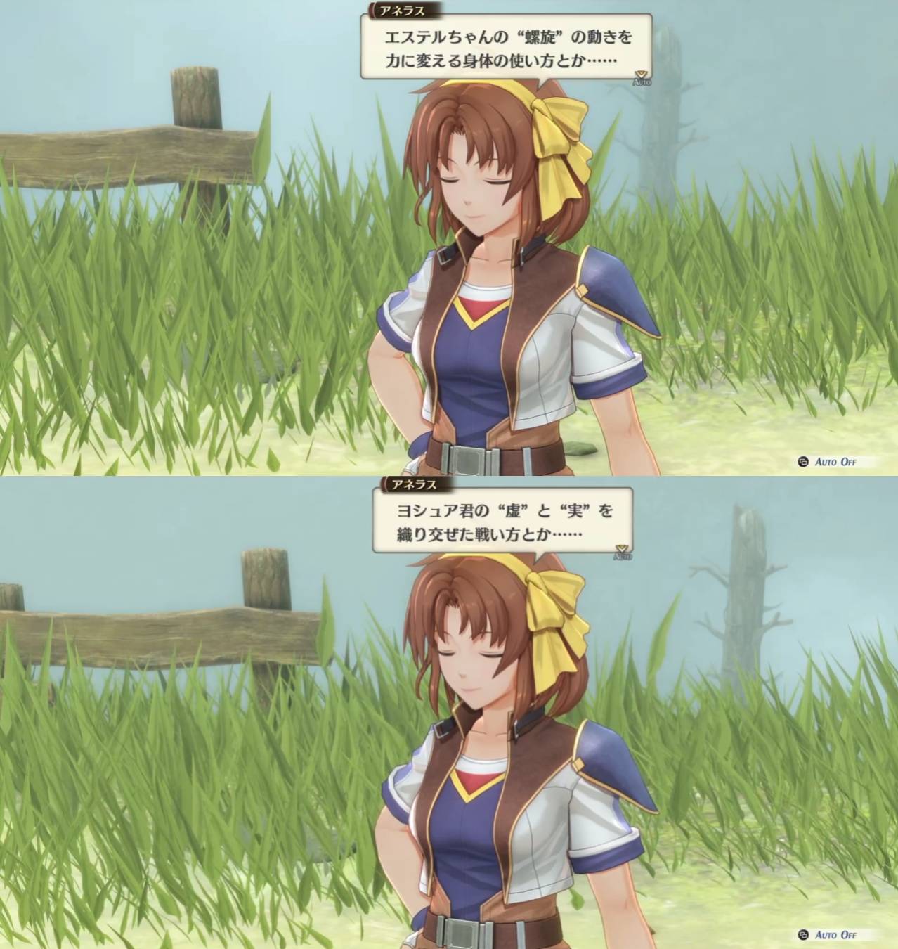 | … | 76325/09/21(日)12:11:44No.1355324592そうだねx1>クロスベル自治団編が2作挟まって閃の軌跡3か4ぐらいまで一切動かなかった所 |