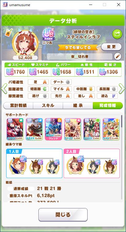 | … | 9525/09/22(月)19:24:45 ID:QssSin3INo.1355755052+>姫勝ててないの意外ですね 確認したらタクトちゃんとタマのサポカ完走してないのが響いてますね そしてそれ以上に後方多すぎて早めに上がりすぎたのもありました |