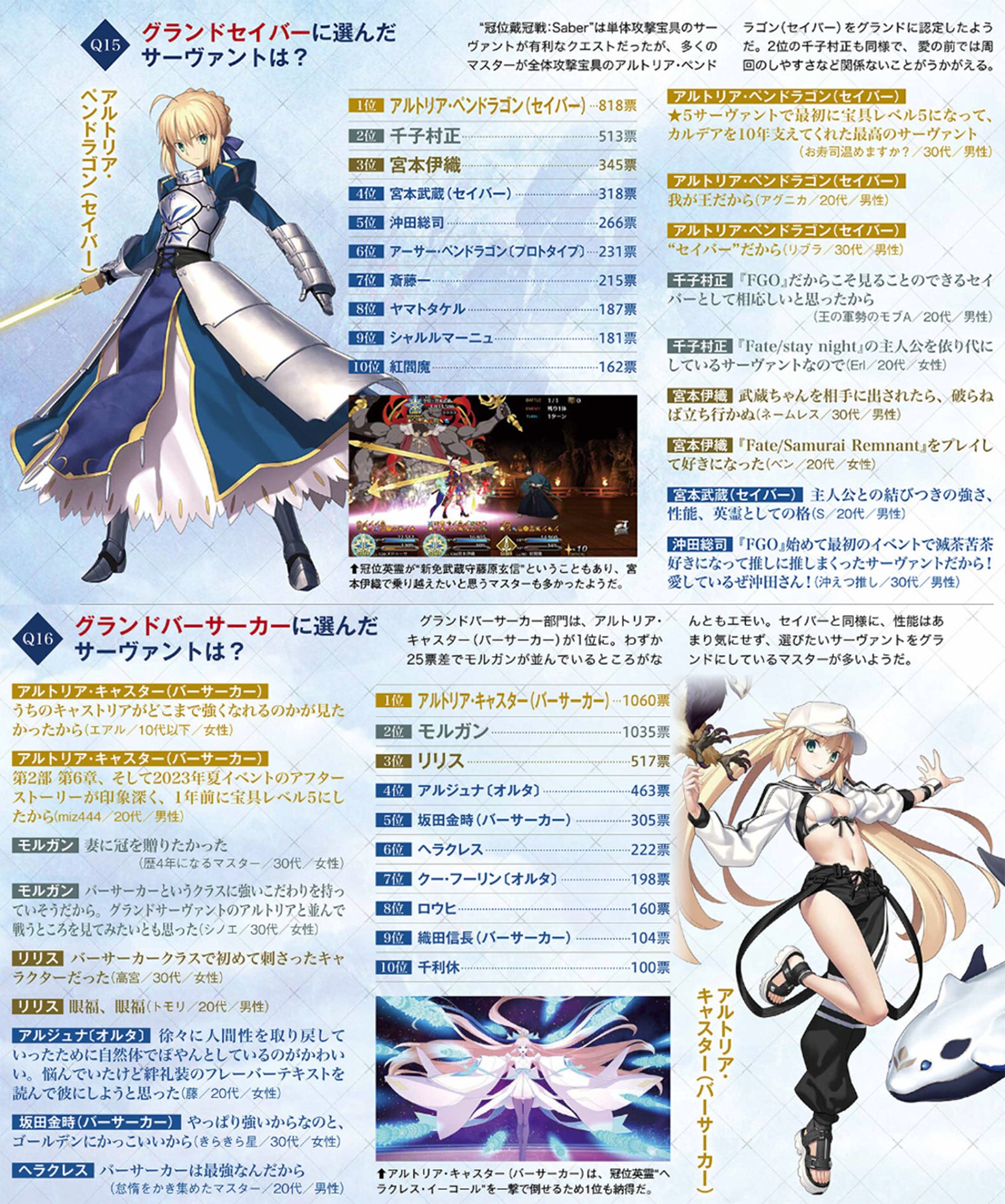 | … | 24225/09/23(火)01:06:09No.1355893812+>人気投票やるとなると公式で出番が多いギルガメッシュ辺りが強そうでちょっとズルいと思いました |