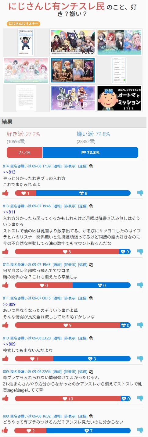 | … | 21925/09/23(火)16:01:59No.1356028962+俺もにじリス叩きたいからにじさんじの炎上の情報どこから仕入れてるか教えてよ😁 |