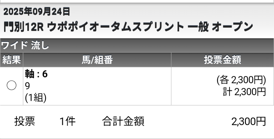 | … | 35025/09/24(水)20:53:00No.1356432143+2着デステージョです! |