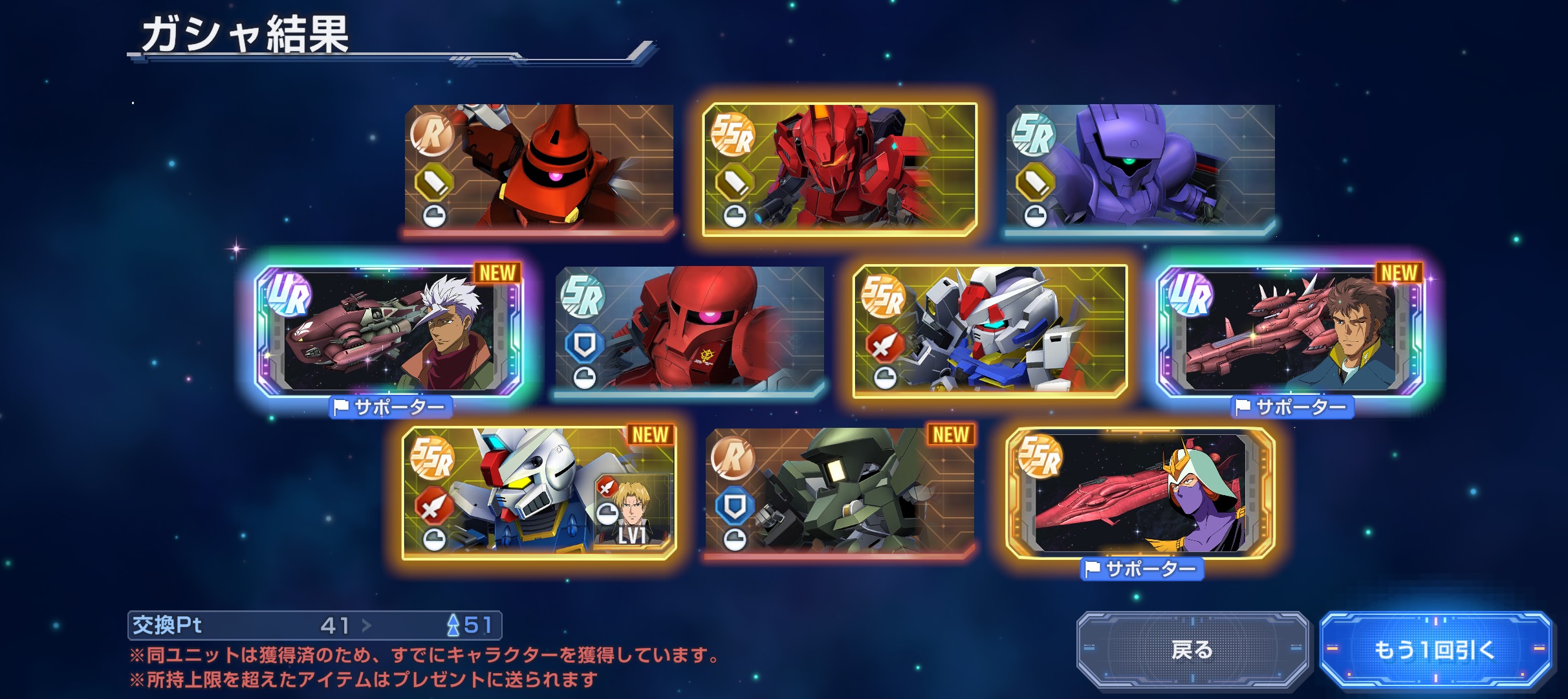 | … | 4525/09/24(水)23:41:41 ID:dr40D6VsNo.1356496623+今のところ70連してUR5体なのはいいんだけどジオング完凸とFAガンダムだから違う!ってなってる |