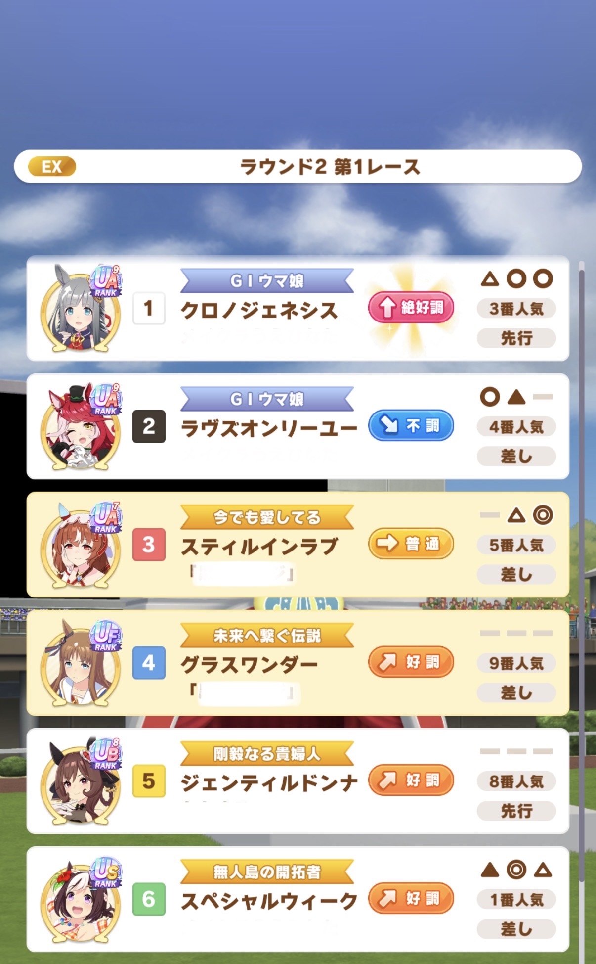 | … | 23725/09/25(木)11:39:10 ID:KltCf/GQNo.1356594704+>差しサポカ環境なら凱旋門ダイヤちゃんでも行けるのではと思いましたが全然行けませんでした |