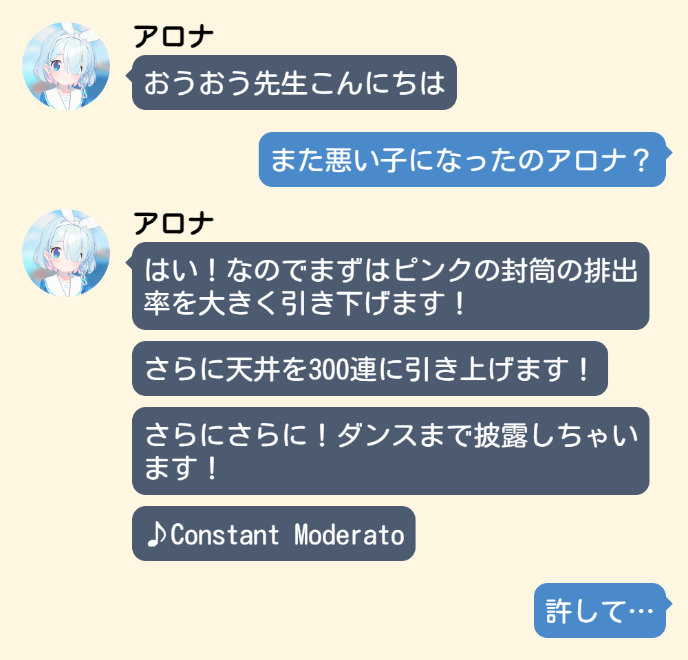 | … | 43425/09/27(土)18:16:47No.1357343574+初期の頃はヒフミに勝手にペロロ好き認定されて泣いてた気がするimgアリス |