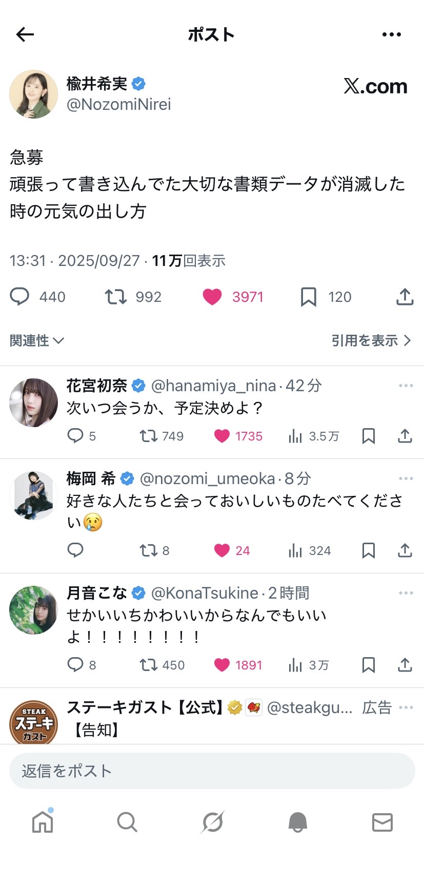 | … | 325/09/27(土)16:43:28No.1357315173+大丈夫? |