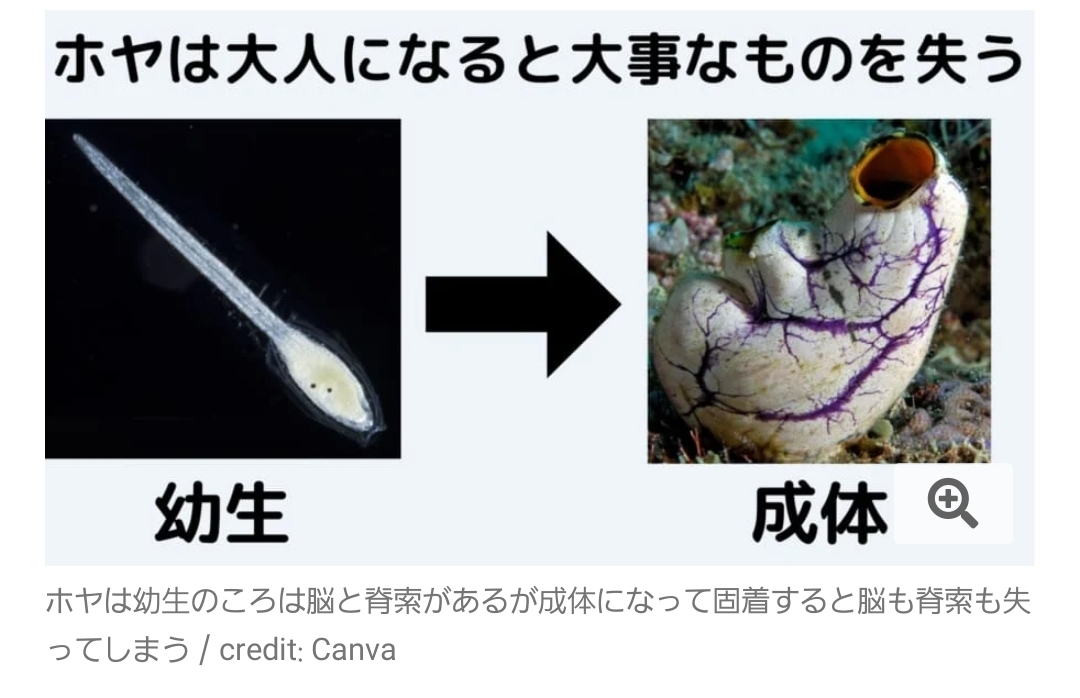| … | 8025/09/27(土)17:06:54No.1357321642+>ホヤにそれなりの知能があったら成体になる≒実質的な死みたいな認識になるんだろうか |