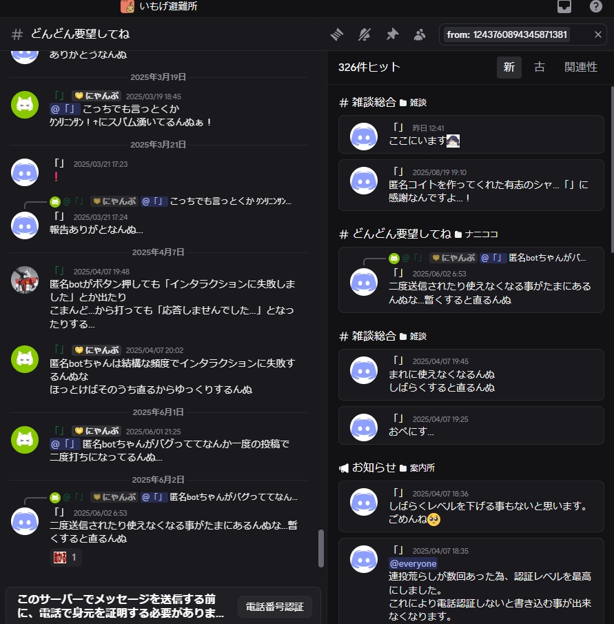 | … | 91625/09/29(月)09:43:39No.1357941261+鯖缶の発狂具合確認するためにだけディスコの垢作ろうかな |