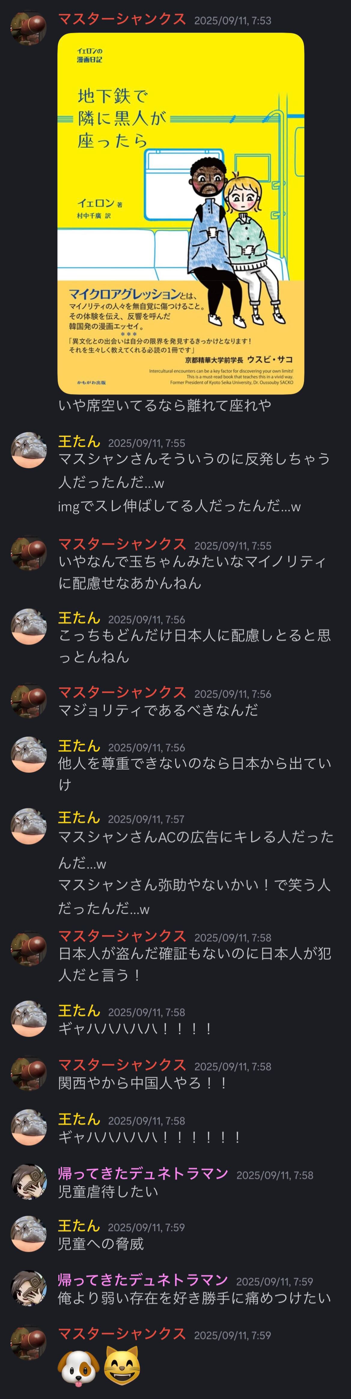 | … | 8325/09/29(月)08:41:06No.1357930539そうだねx5img荒らしの相談してたシャンカーDiscordにも居るんだよなあ…鯖あき |