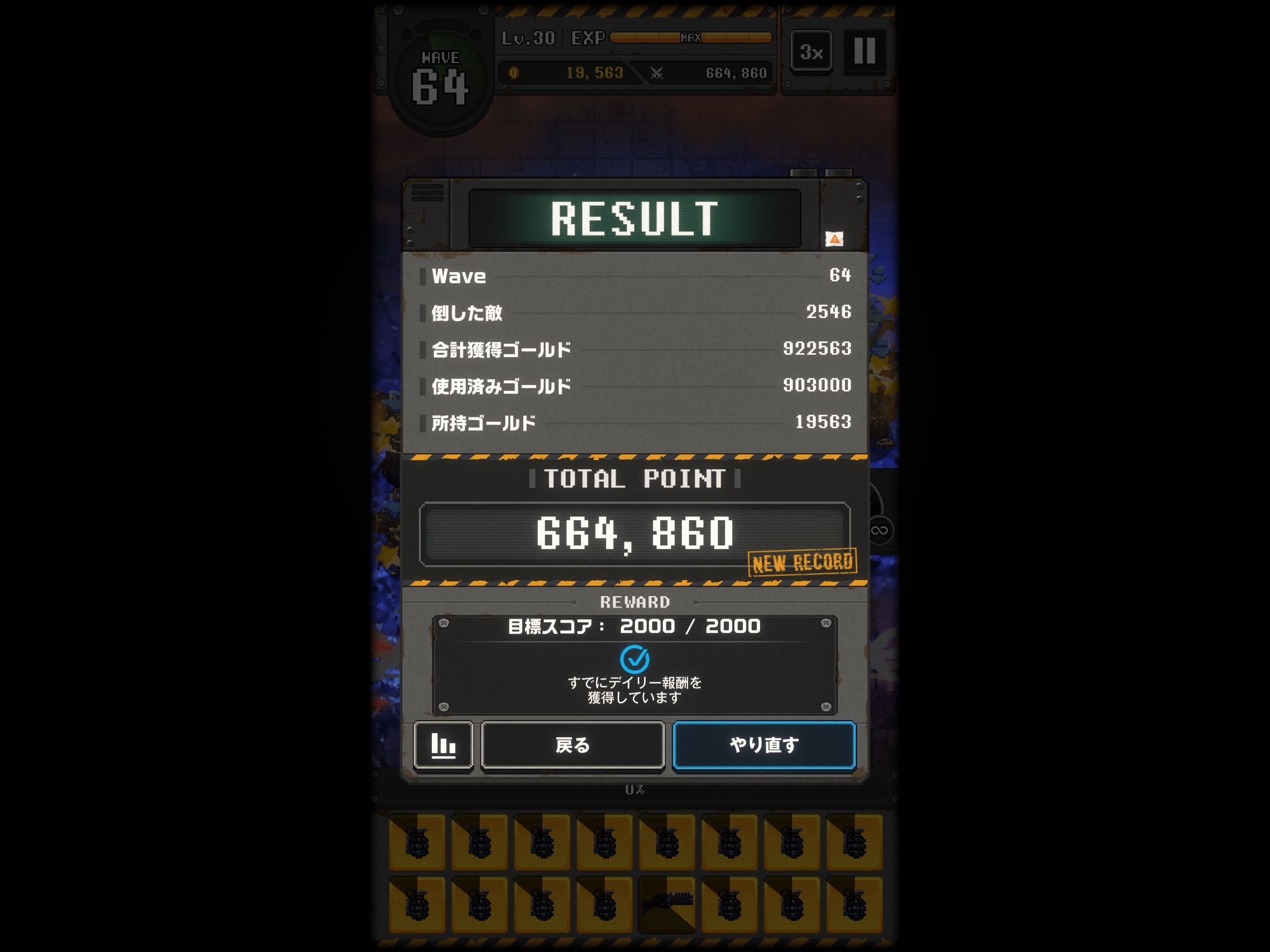 | … | 4925/09/30(火)19:22:34No.1358419618そうだねx1WAVE10までに敵強化10 WAVE20までに敵強化30 WAVE30までに敵強化60にならなければリセってる |