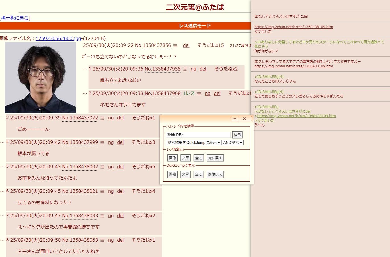 | … | 2025/09/30(火)20:09:57 ID:kczm8UgsNo.1358438121そうだねx17idがない |