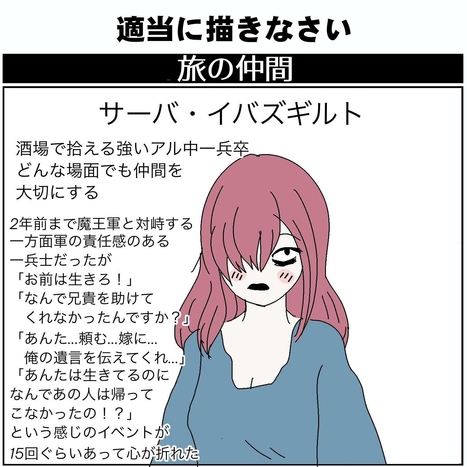 | … | 1025/09/30(火)23:12:09No.1358510603+>冒険に連れてったらいけない心理状態じゃないのこれ |