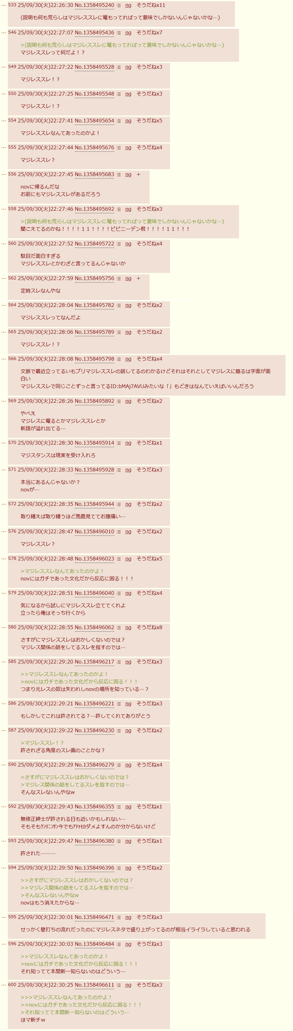| … | 2025/09/30(火)23:39:11No.1358518864+このスレ立てたのもマジレスファミリーらしいな |