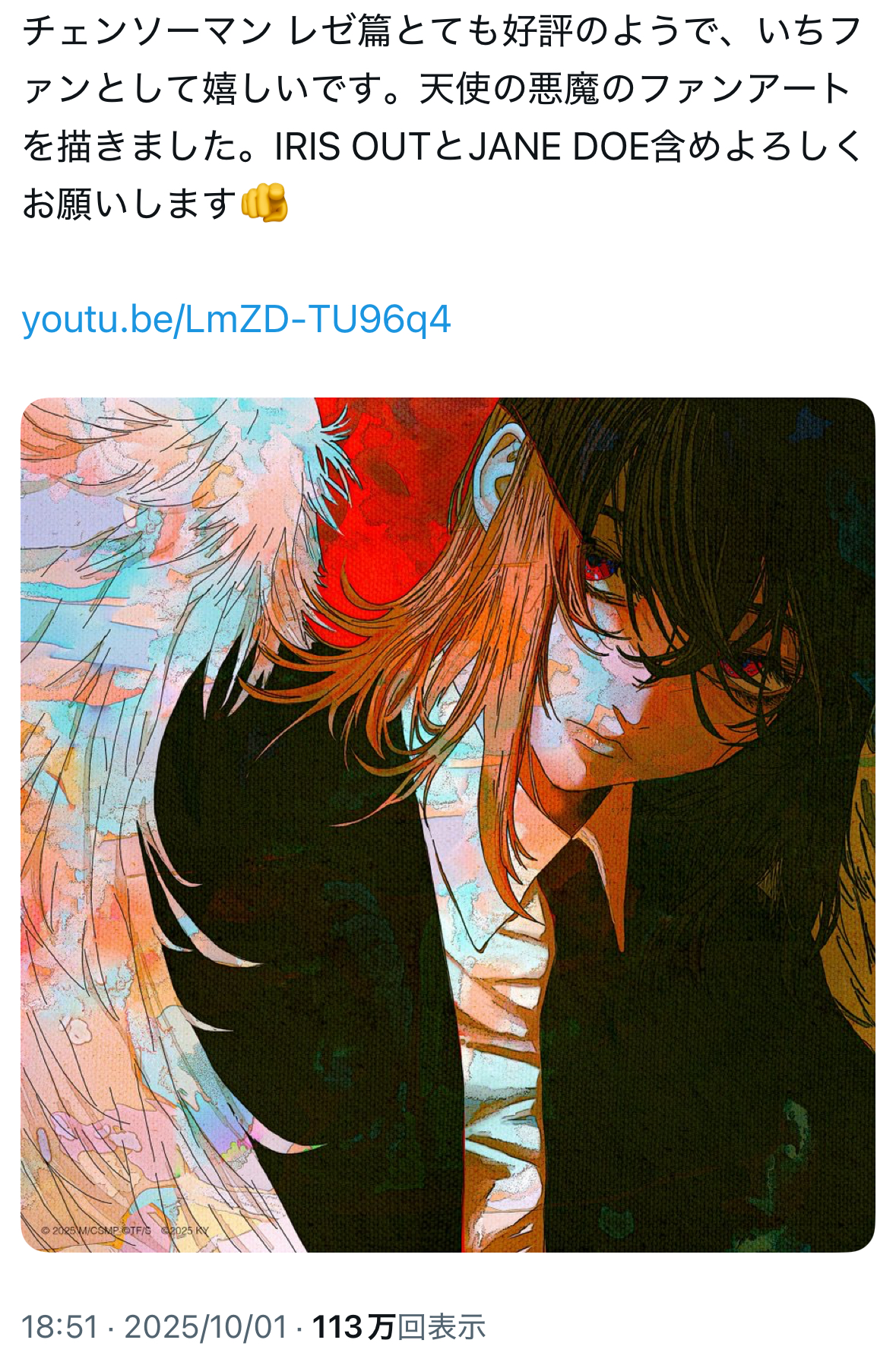 | … | 725/10/01(水)19:44:42No.1358725604+この人本当にチェンソーマン好きなんだな…ってなる |