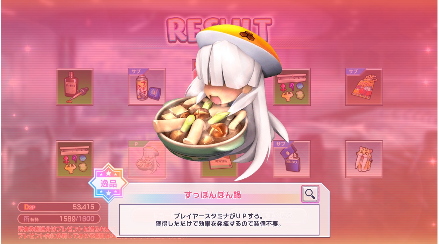 おそらく来週には超昂装備がくるので装備の処分はそれまで待つ表情