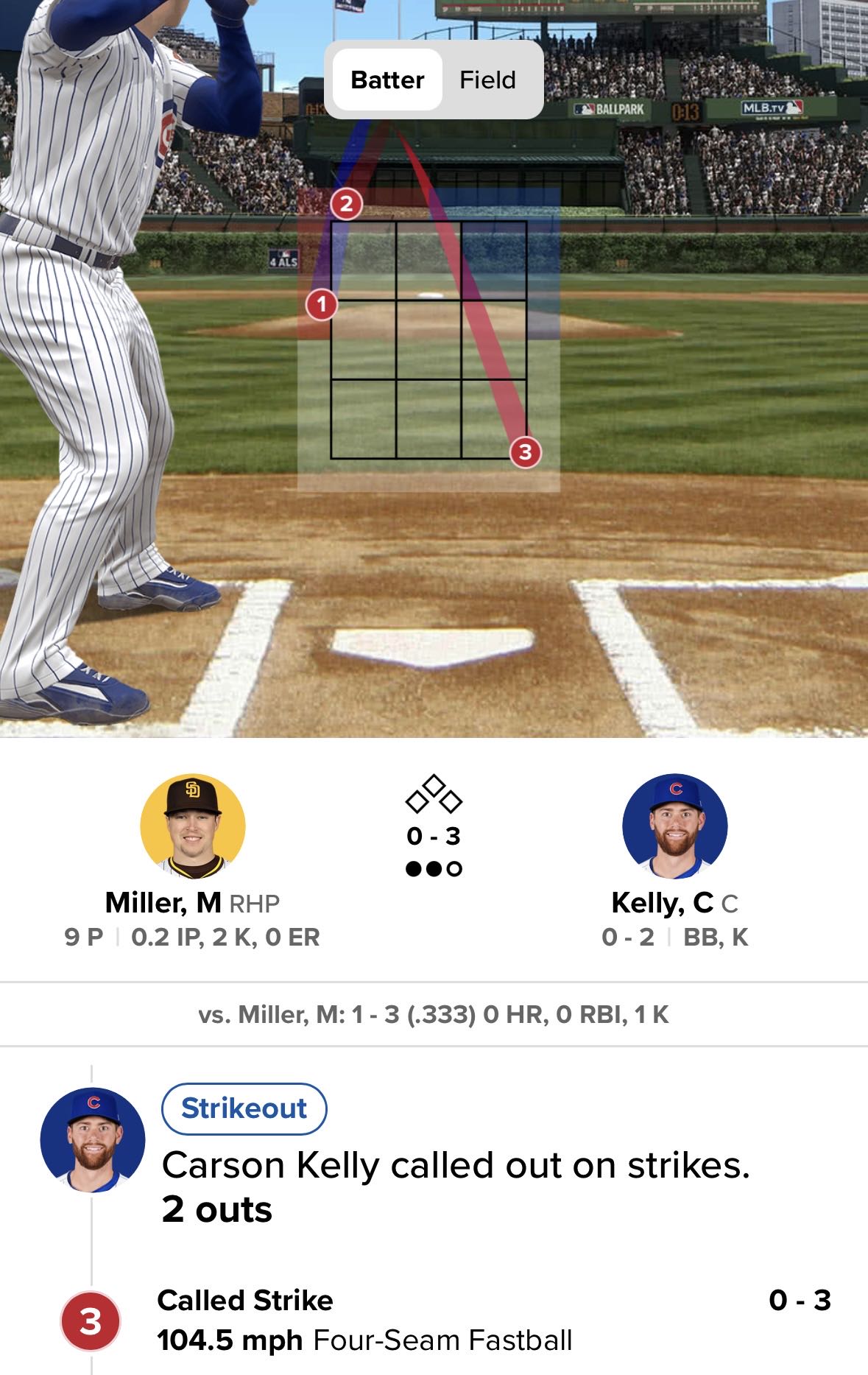 100マイルの球は打たれるかもしれないが上下左右コースギリギリに放り込まれる104.5マイル(168km/h)は打てまいとばかりにミラーの本気中の本気を叩き込まれてカブスはノーチャンスだった