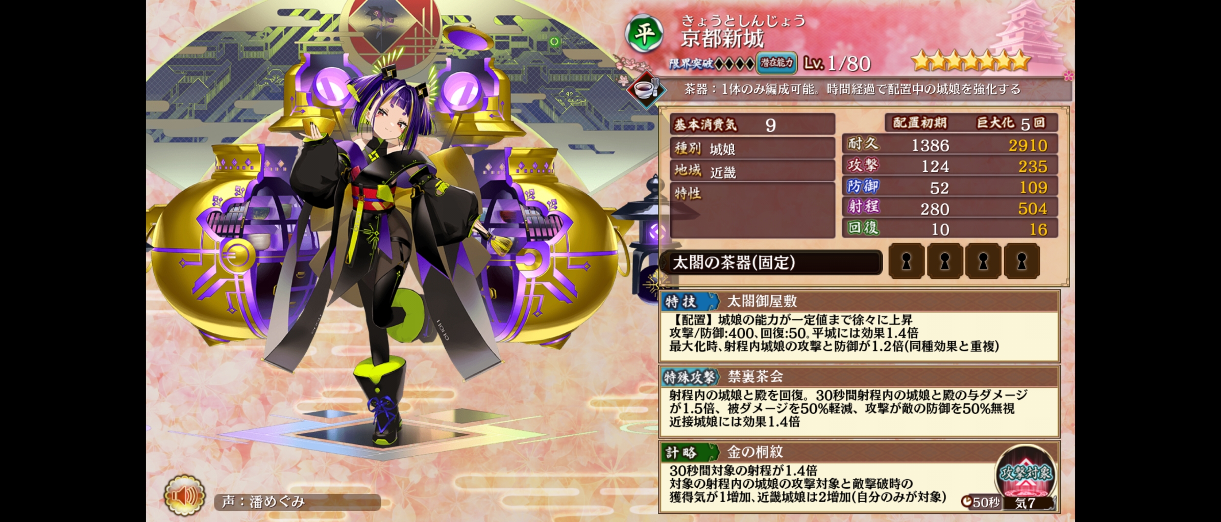お城は低レアでいいから被ダメージ軽減持ってる歌舞連れてって巨大化させるわん