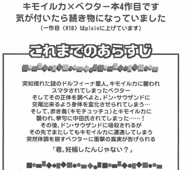| … | 29125/10/02(木)20:45:46No.1359036584+>>唐突にキモイルカに卵産み付けられるベクターの同人誌思い出した |