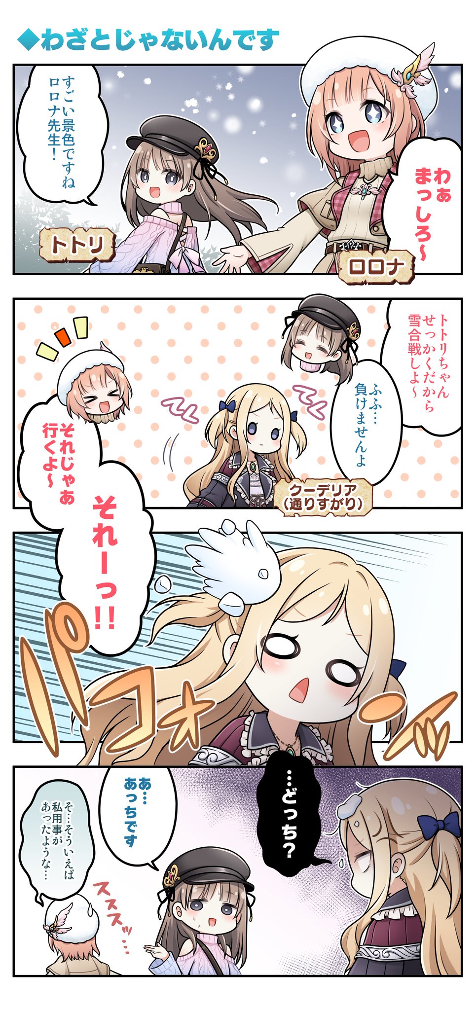 | … | 9425/10/03(金)12:14:24No.1359194428+トトリ13歳(26歳) ソフィー16歳(24歳) ウィルベル14歳(24歳) ロゼ17歳 |