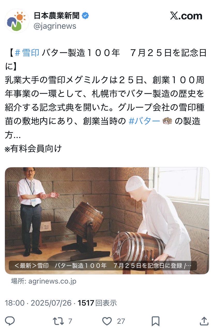 | … | 8425/10/03(金)16:03:25 ID:MZby.kXoNo.1359244546そうだねx1トリッカル…全ての乳製品企業垢が味方です… |