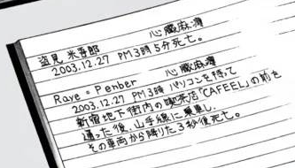 | … | 3825/10/04(土)10:08:52No.1359479282+封筒の中のノートに名前を書くだと…なるほどこのノートに名前を書かれると死ぬというわけか… |