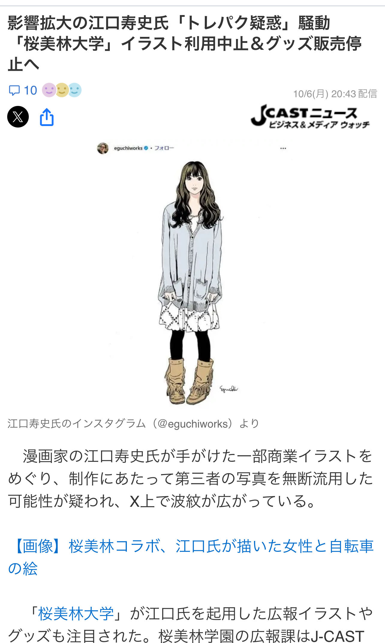| … | 5925/10/07(火)14:16:42No.1360524001+江口寿史のファンが持ち去ったのか? とか思ってたらトレパク騒動かよ 全然知らんかった… |