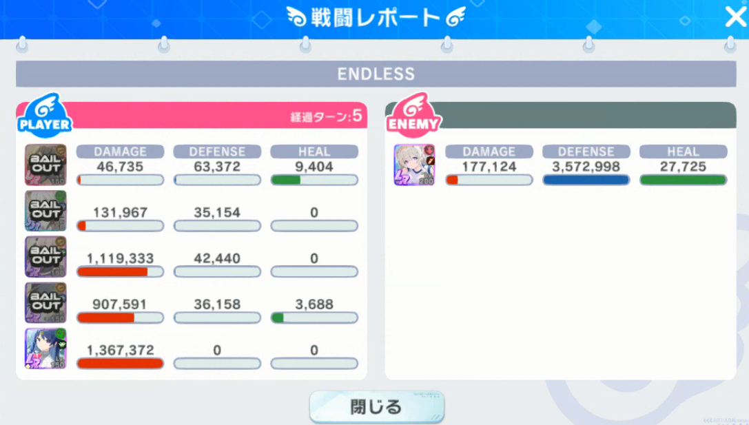 | … | 7525/10/07(火)19:58:35 ID:d9ffUsVUNo.1360604763+>>ノエルちゃんが4回バフした状態の攻撃力を攻撃受けるキャラの防御力が上回ってるなら何されても1ダメになるって事ピコ? |