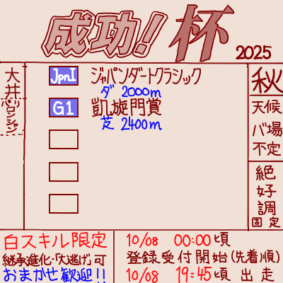 | … | 30425/10/08(水)07:57:50No.1360747478+>ジャパンダートクラシックは頭ナチュ一択ですよ! |