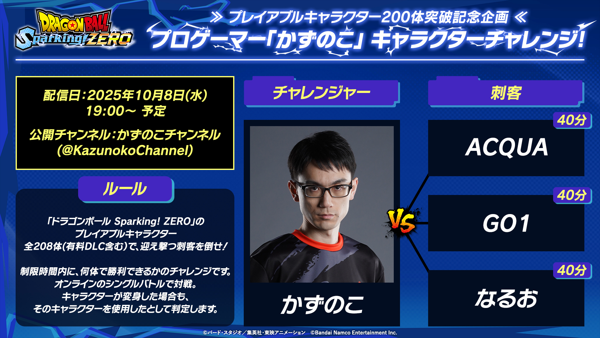 | … | 6725/10/08(水)19:04:43No.1360884578そうだねx4>バンナム公式じゃなくてかずのこチャンネルでやるんだ |